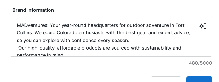 NOTE: This will overwrite any previous text in the Brand Value Proposition or Brand Information fields (depending on which one you’re creating) - unless you are editing a specific highlighted portion of your existing text.